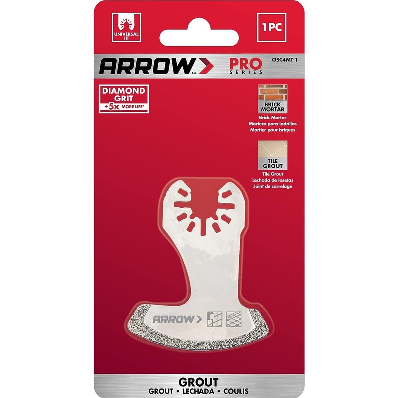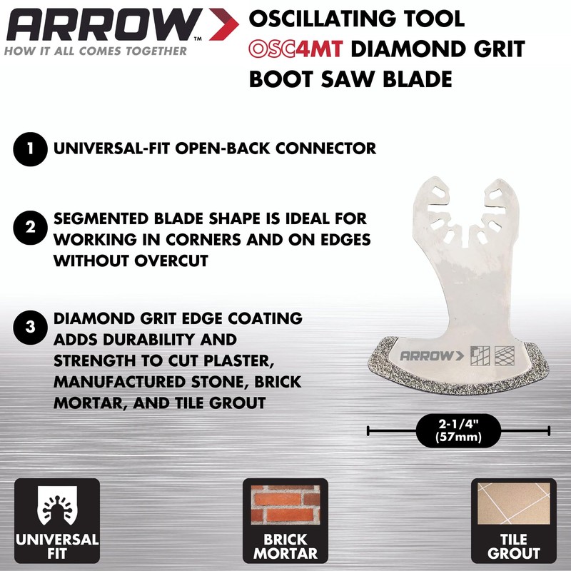 Arrow OSC4MT-1 Diamond Grit Oscillating Tool Boot Saw Blade for Brick Mortar and Tile Grout, Universal, Fits Most Multitools, 2-1/4 Inch