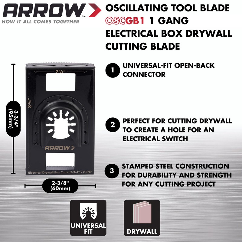 - ELECTRICAL PROJECTS MADE EASY: The Arrow Single Gang Electrical Drywall Box Cutter attachment is a must-have item for electrical projects; This oscillating tool accessory is perfect for cutting drywall to create a hole for an electrical switch