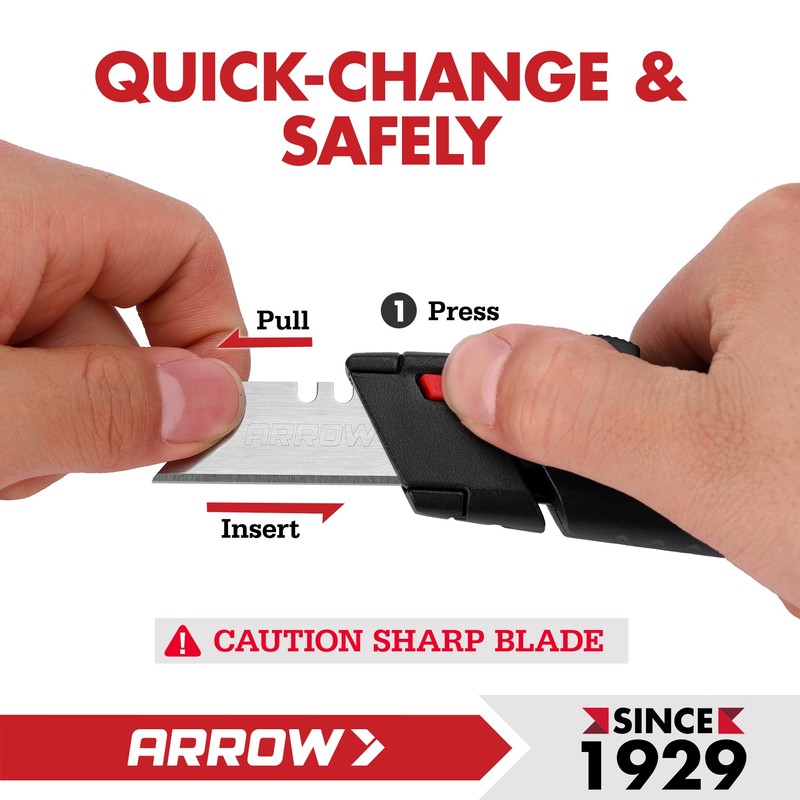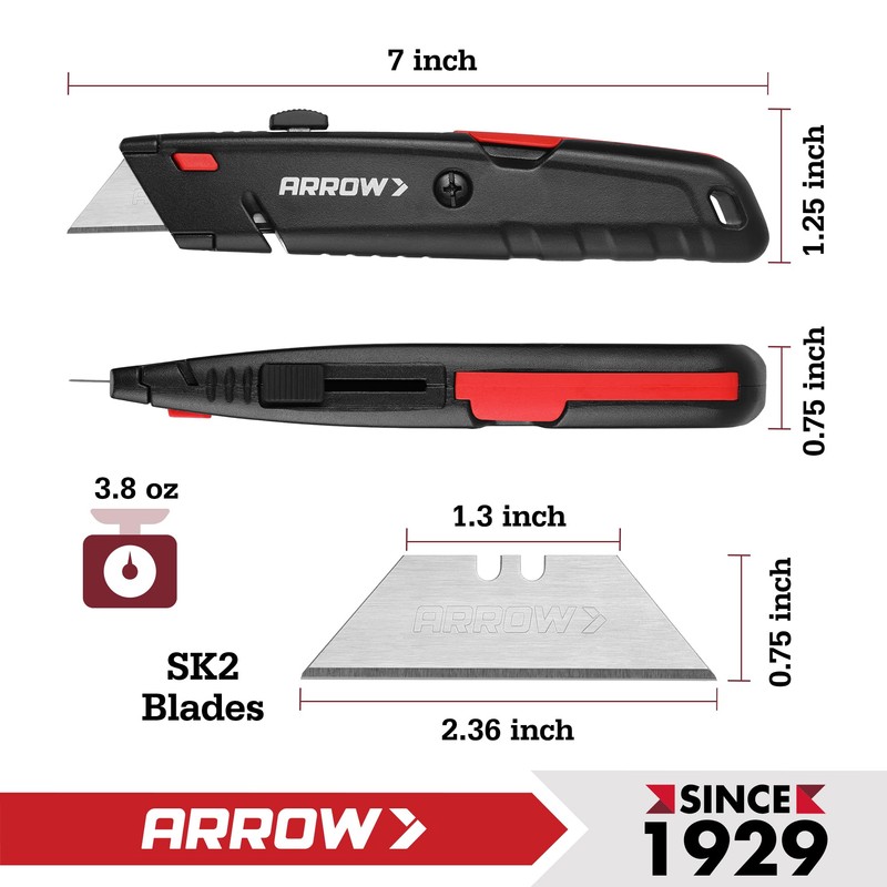 ARROW Retractable Box Cutter, Quick Change Utility Knife with Blade Storage Design, Heavy Duty Aluminum Razor Knife, Twine Cutter, 3 Extra SK2 Blades Included
