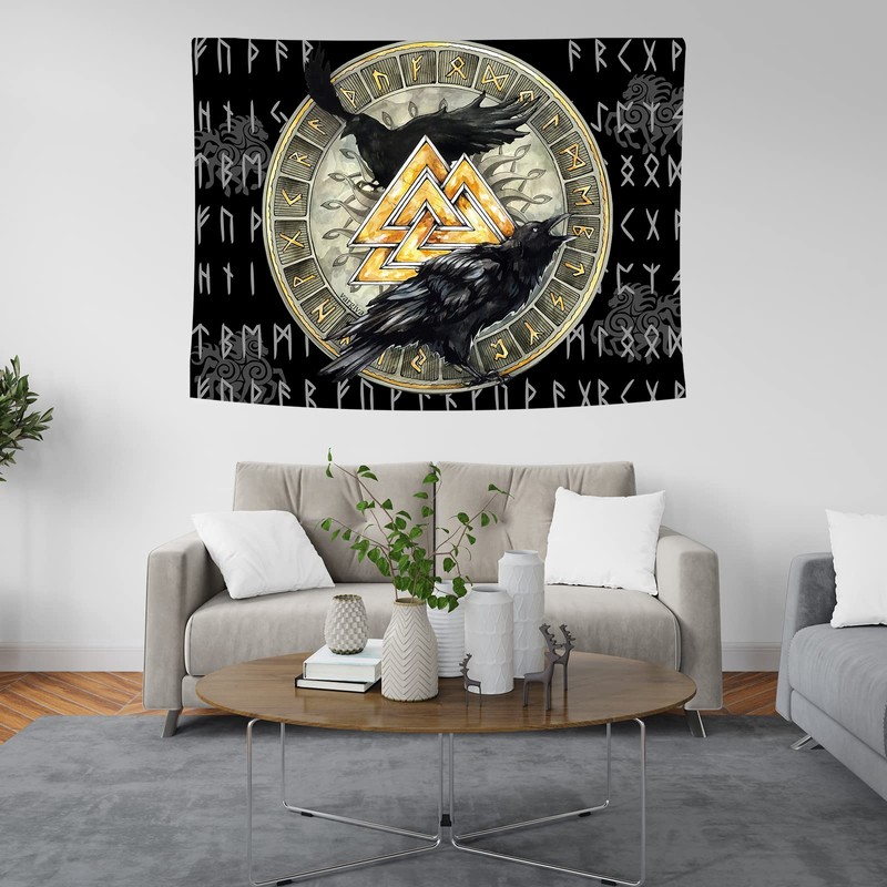 - IDEAL DECORATION: unique viking raven runes valknut art tapestry, clear lines, bring you an ancient and mysterious visual impact, each pattern is a symbol of the Vikings.