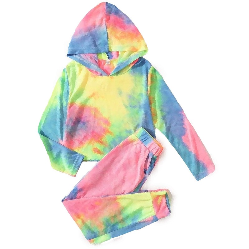 Arshiner Girl's 2 Piece Tie-dye Pullover Hooded Sweatshirt Set Sweatsuits and Sweatpants