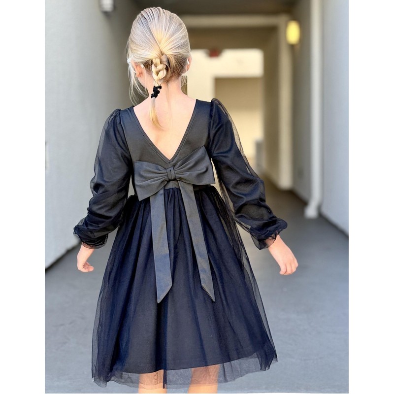 Arshiner Toddlers V Back Dresses Tutu Tulle Long Sleeve Princess Party Special Occasion Wedding Fall Winter Toddler Girl Dress Black 4t