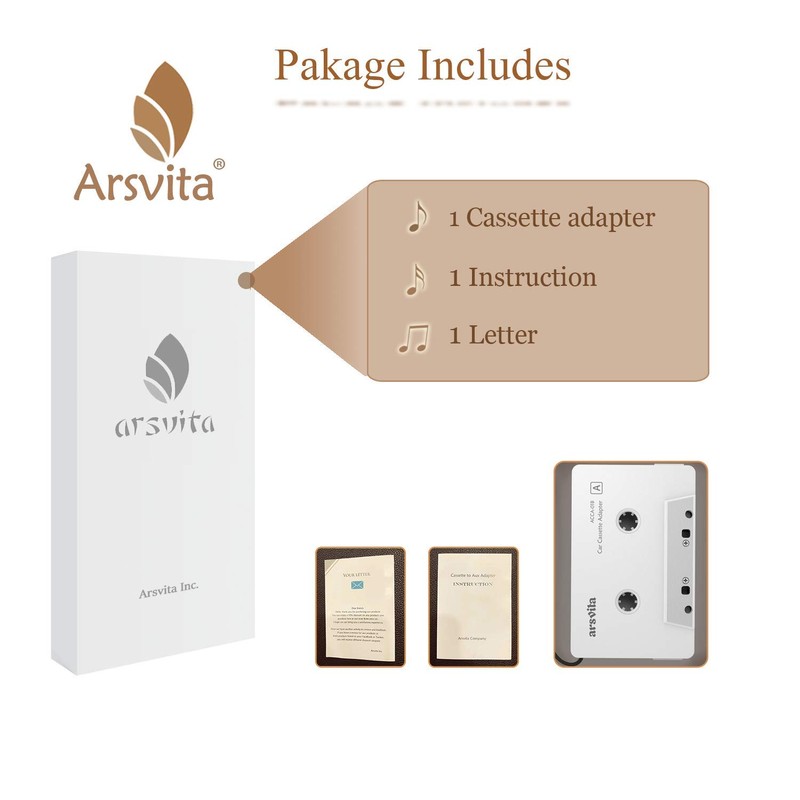 - 【 Premium Sound Quality for Music】: The Arsvita audio Cassette adapter's intelligent step-down design creates a secure connection, while its dual shielding, polished metal molding, and corrosion-resistant gold-plated plugs ensure reliable performance and minimal signal loss. Seamlessly transmits stereo audio for high quality sound, making you enjoy your music anywhere and anytime!