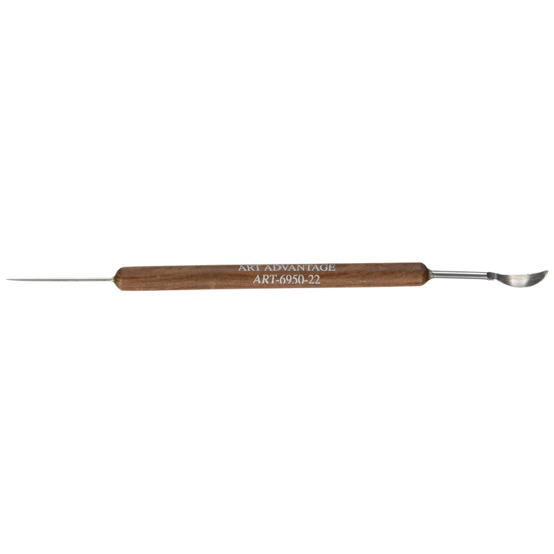 Art Advantage, double duty with sharp needle and curved clean-up tool. Great for pottery. Handle made of wood.