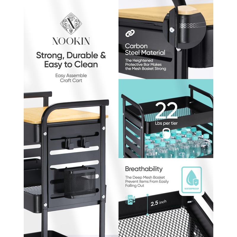 - 🎁【Bonus Accessories for Maximum Convenience】 Enjoy $20 worth of bonus accessories! This cart includes 6 heavy-duty hooks, perfect for hanging kitchen utensils, office supplies, or craft tools. Plus, 2 spacious mesh baskets allow for quick & easy access, ensuring everything stays within reach.