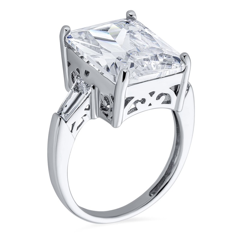 - GORGEOUS DESIGN - This luminously majestic sterling silver engagement ring will take her breath away. Accented by a flawlessly gleaming princess cut cz center stone with finely detailed shimmering baguette cut czs on either side.