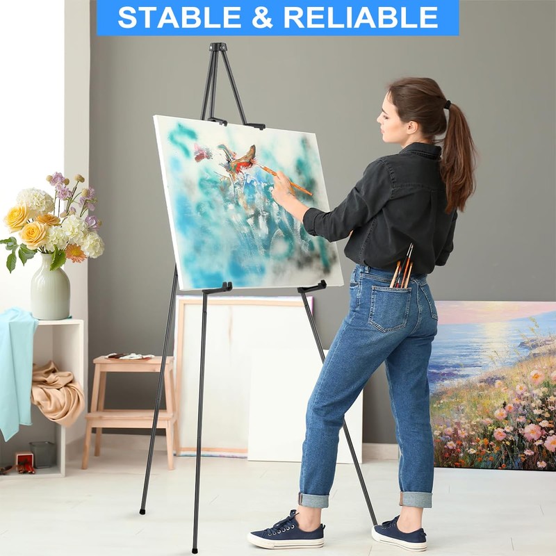 Art Painting Display Easel, 66" Large Easel Stand for Display, Tripod Collapsible Metal Portable Floor Easel, Foldable Stand with Portable Bags, Extra Sturdy for Paintings, Drawing and Wedding