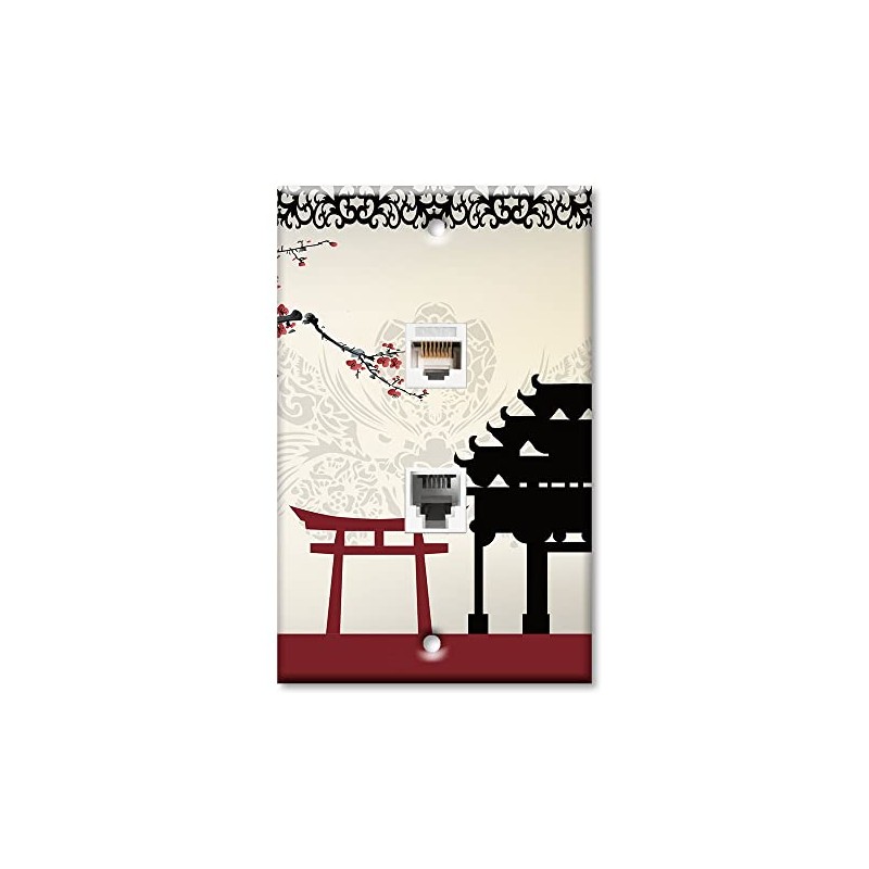 Art Plates - Decorative Printed 2 Port Data Wall Plate - RJ11 Telephone Jack Connector and RJ45 (Cat5, Cat6, Cat7) Ethernet Connector - Gold-Plated Contacts - Asian