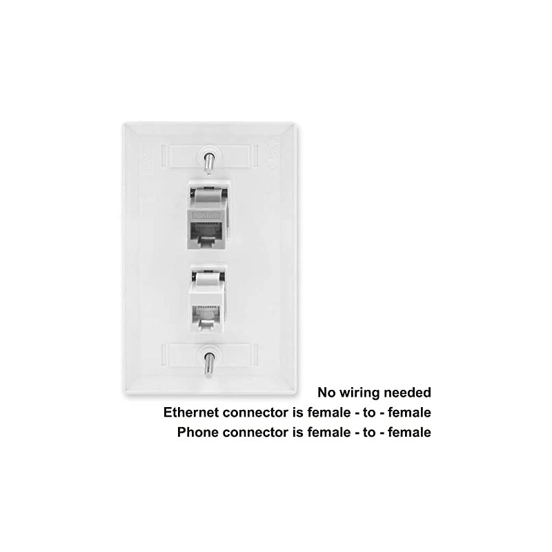 - Simple to Install: Two minute, do-it-yourself job changes the look of your room. No wiring required. RJ11 telephone jack has gold plated female-to-female connections. RJ45 ethernet jack has gold plated female-to-female connections. Color matched screws are included.