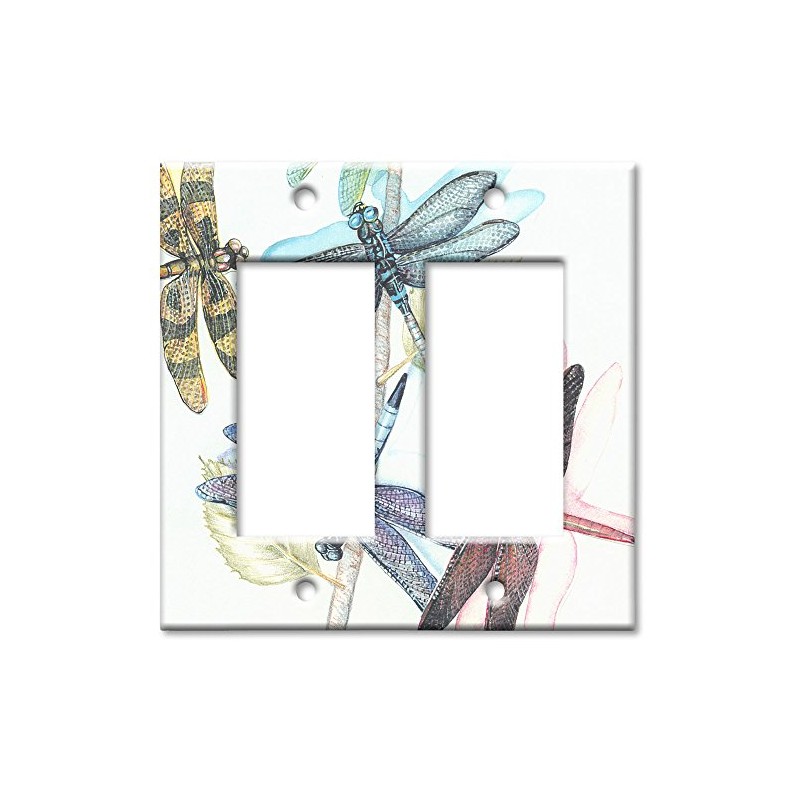 Art Plates - Double Gang Rocker OVERSIZE Switch Plate - OVER SIZE Decorative Metal Wall Plate - Dragonflies - (Made in USA)
