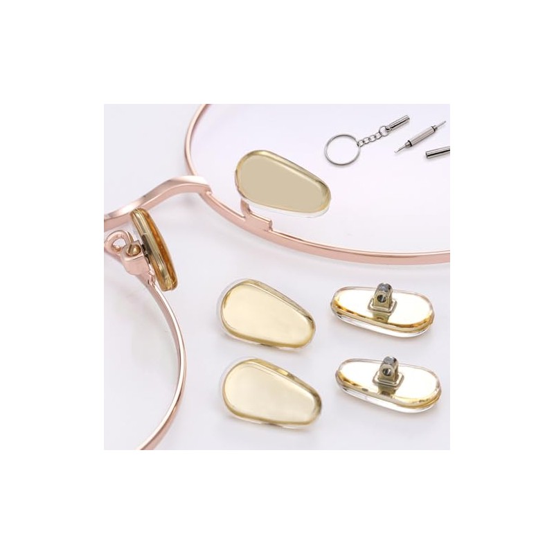 - There are 15 different types of screws for eyeglasses, with each type having 2 pieces. While the quantity may not be substantial, the range is comprehensive, encompassing common screws used for eyeglass repairs such as those for nose pads, metal frames, hinges, and plastic frames.