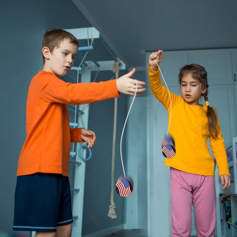 - CLASSIC YOYO FUN: Have the little ones giggling in glee with these super-fun stars and stripes yoyos. Every set comes with 12 yo-yo toys for hours of classic fun. Each US flag yoyo measures 2”; this means ultra-portable fun to keep boredom at bay at home and away.