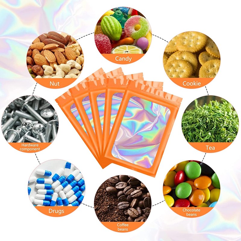 - 【QUANTITY】100 pieces of resealable holographic bags in the package, enough for your daily use.Please note that the actual color may appear in a slight difference under different light,angle and screen