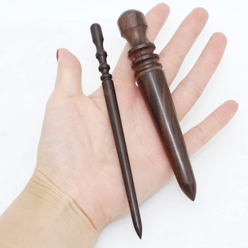 ARTCXC 2pcs(Coarse and Fine) Leather Craft Tapered Edge Slicker Solid Ebony Wood Leather Burnishing Tool for Burnishing Leather Projects Craft