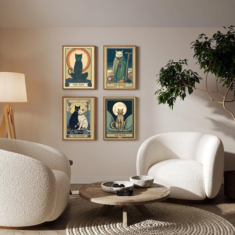 - Lugares aplicables: la pintura en lienzo de cartas de tarot de gato se puede decorar en tu sala de estar, dormitorio, cocina, baño u oficina, estudio, dormitorio, etc., y reflejará un color distintivo para tu espacio