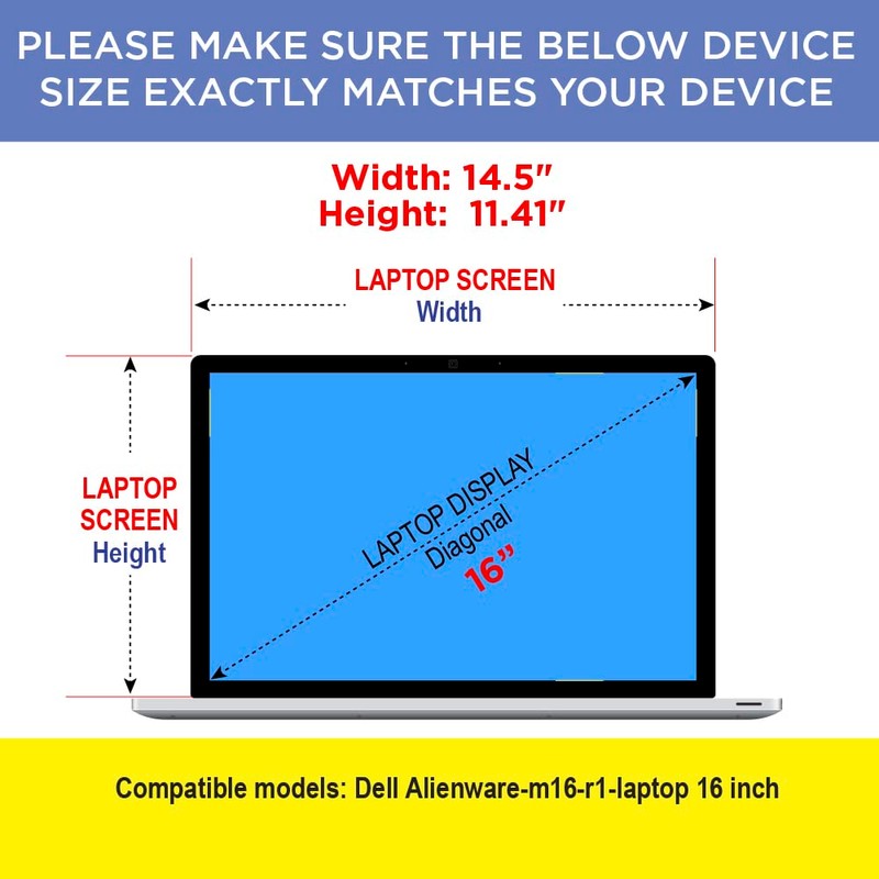 - FULL GLASS COVERAGE: Screen protector specially designed and manufactured in USA for your Dell Alienware-m16-r1-laptop 16 inch