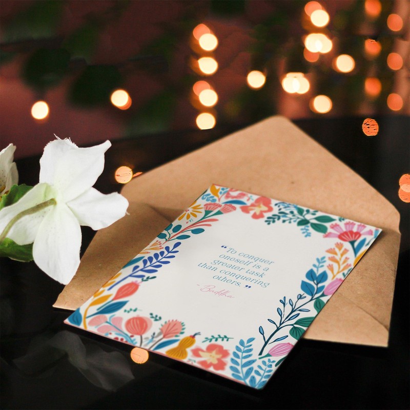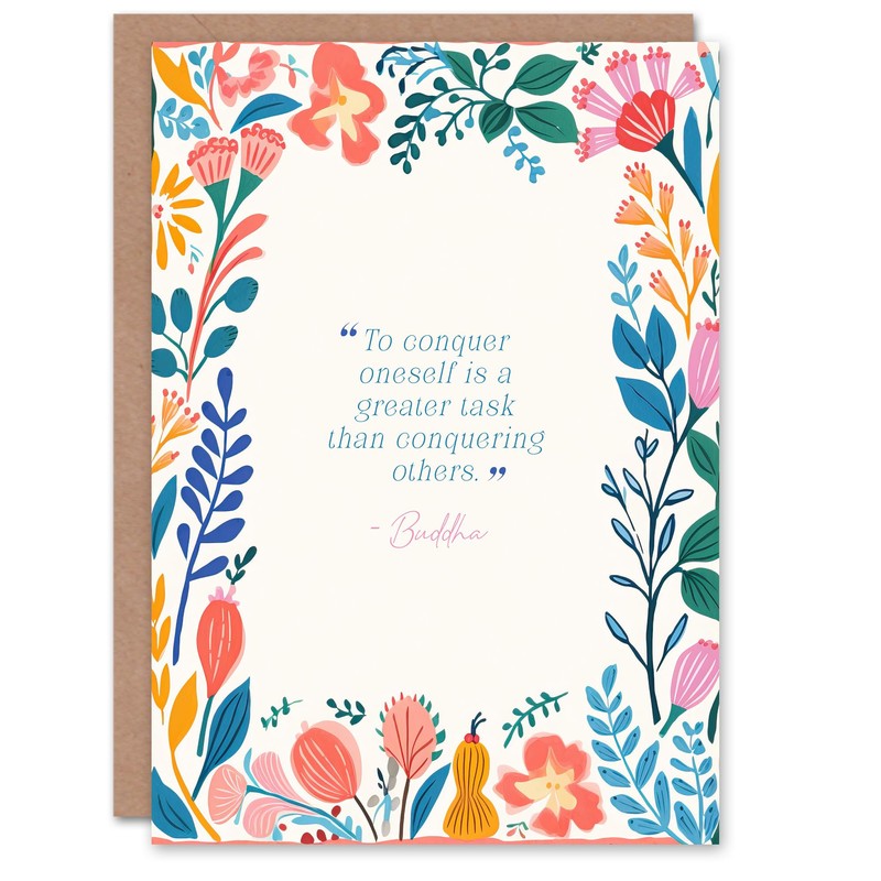 Artery8 Spiritual Birthday Card Conquer Oneself Buddhist Mindfulness Quote Floral Blank Card For Him Or Her