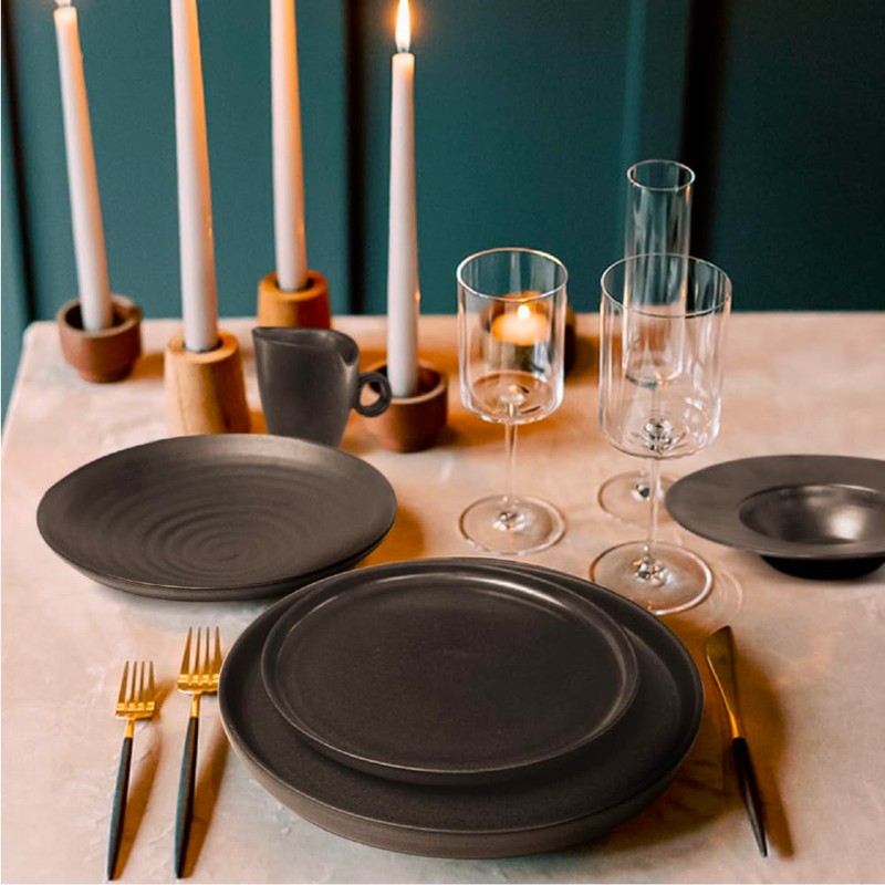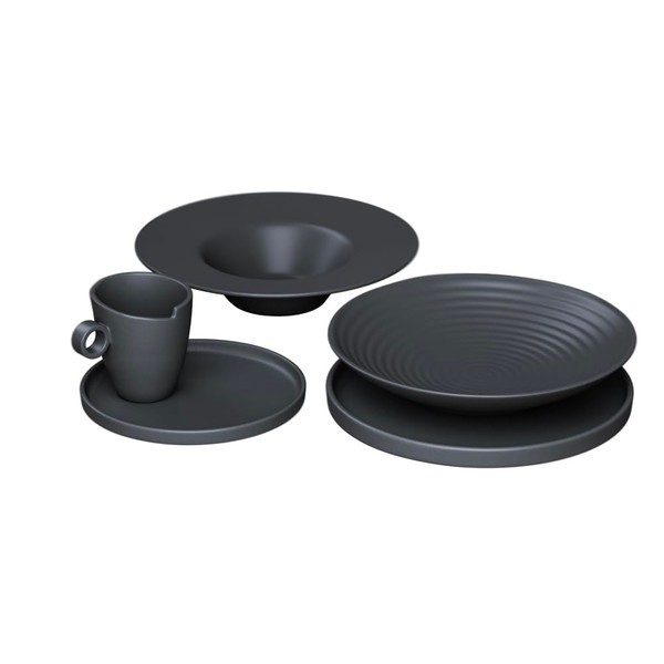 Artesa Organics Atmosfera Slate Gray Ceramic Dinnerware Set, Handmade, 4-Piece Place Setting with 11-inch Dinner Plate, 8-inch Salad Plate, Bowl, Cup