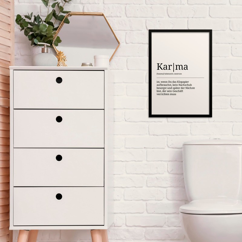 ARTFAVES® Poster Definition Karma (WC) | Word Explanation Duden Lexicon Wall Decoration Wall Picture Saying as a Gift | with Frame Wood Oak | 21 x 30 cm