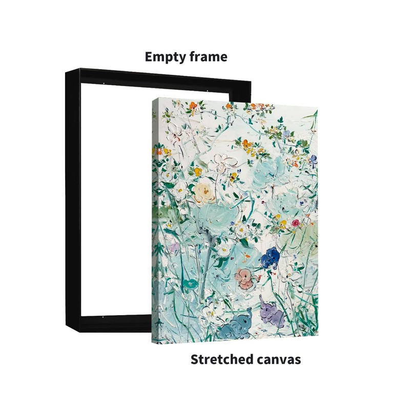 - Choose A Proper Canvas Frame- The listed floater frame size is based on inner dimensions. For example, if your stretched canvas painting is 12”x16”, then please order the 12”x16” frame. The rabbet depth of the painting frame is 1.5 inches. There are 0.2" gaps on each side to create an interesting visual detail and a sense of three-dimensional depth in the overall display.