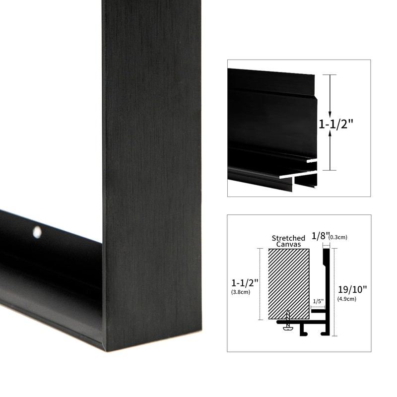 - Metal Canvas Frame - Solid Meteral, It is made of high quality aluminum alloy with brushed finish. This metal frame is sturdier, reusable. Modern, minimalist style highlights your canvas paintings, prints or pictures, instantly creating a warm, cozy, elegant room.