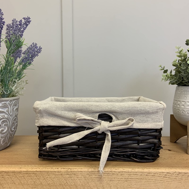 Arthur Cameron natural wicker lined trays. Each tray is handcrafted by artisans in northern China, and lined with a removable cotton liner. Size 27x17x11cm. Four different colours. The ideal choice for designing your own custom Christmas hamper baskets. The ideal choice for designing your own custom Christmas hamper baskets.