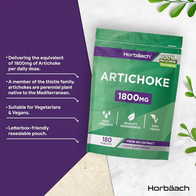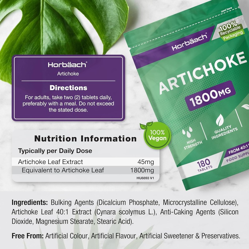 Step up your daily nutrition with Horbaach Artichoke Extract. This highly innovative formula provides 1800mg Artichoke Leaves per two tablets. Simply take two (2) tablets with some water and reap the health benefits of this great value supplement for 3+ months!