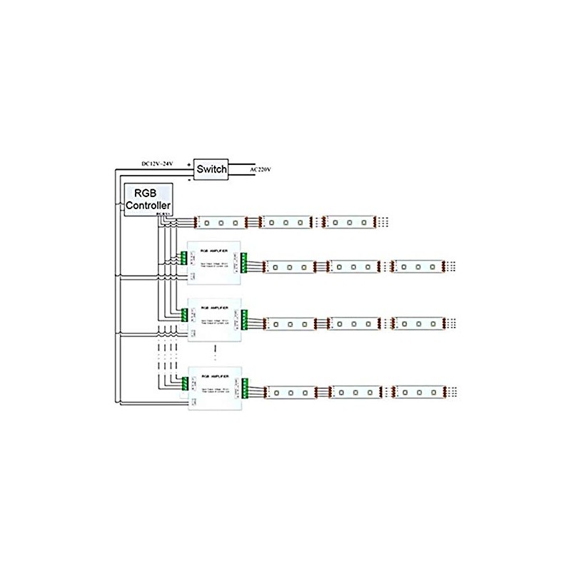 Power supply voltage: DC 12 v ~ 24 v A single installation dimensions: 81 * 64 * 24 mm A single packing size: 115 * 70 * 35 mm Individual net weight: 90 g single gross weight: 100 g Output: 4 loop (+ RBGW) connection mode: Yang Static power: < 1 w input/output photoelectric isolation, not total Output current: < 6 a/CH A 12 v output power: 24: < 288 w, 24 v: < 576 w