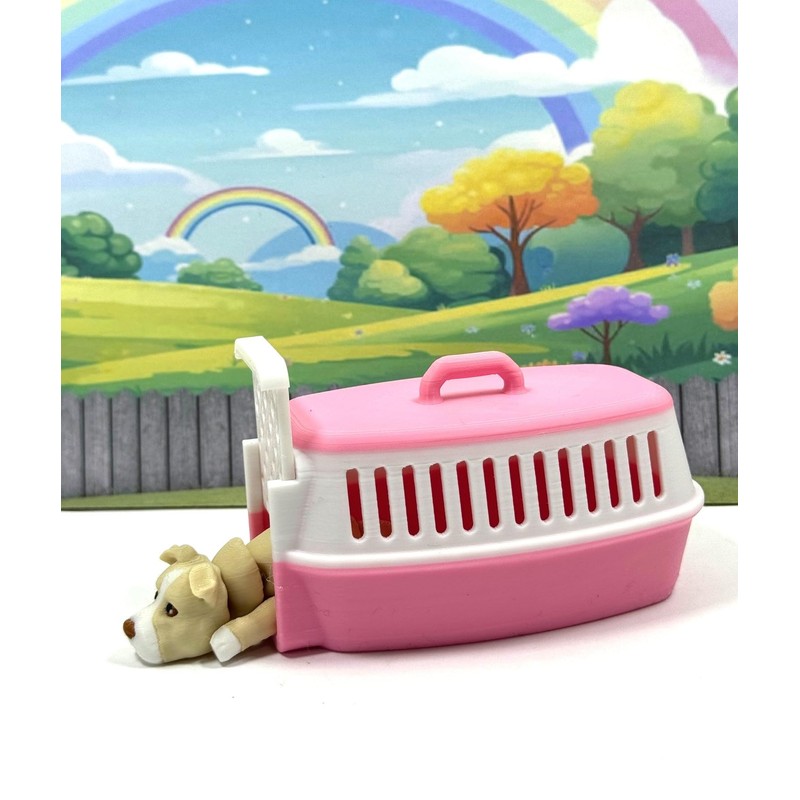 Articulated Pitbull Puppy Animal Toy, 3D Printed Dog Carrier Pet Kennel, Fidget Animal Dog Toy, Office and Home Decor - ADSET3-PIT-PK