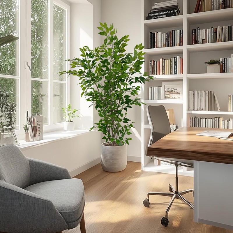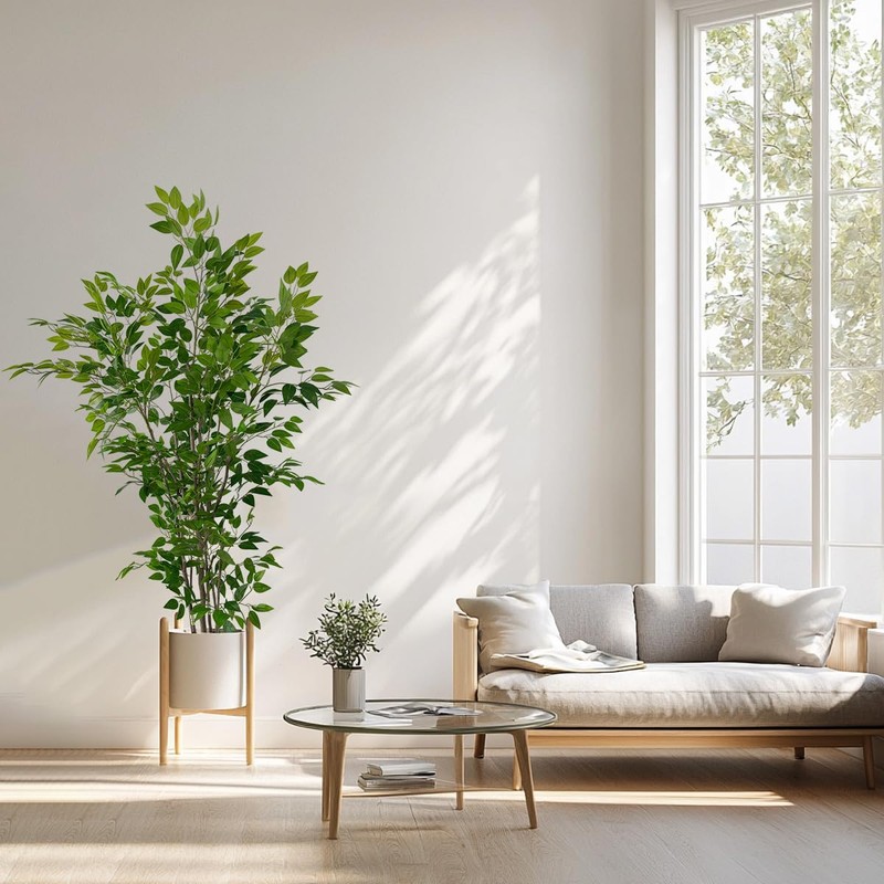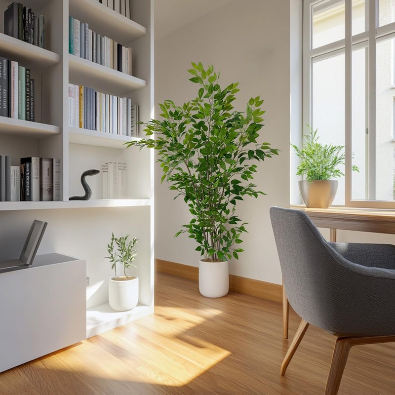 - REALISTIC DESIGN: Features lifelike green ficus leaves and natural-looking branches that create a convincing artificial indoor tree appearance