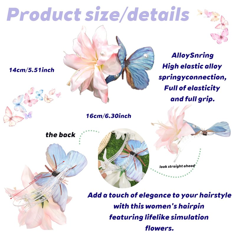 - 【Perfect for Summer】 Add a touch of summer flair to your look with these summer hair clips. Whether you're attending a beach party, wedding, or simply enjoying a day out in the sun, these colorful Butterfly Lily Pearl hair clips are the perfect accessory to complement your summer style.