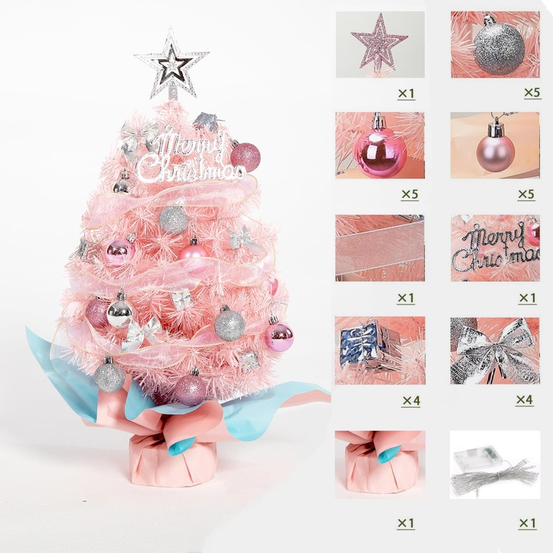 - Christmas Decoration: Come with pink tree skirt,pink Christmas ball ornaments.Insert the stand, pull open the tips, style to your desired look.This mini christmas tree with Christmas balls and pendants is a great addition to your room decoration during Christmas