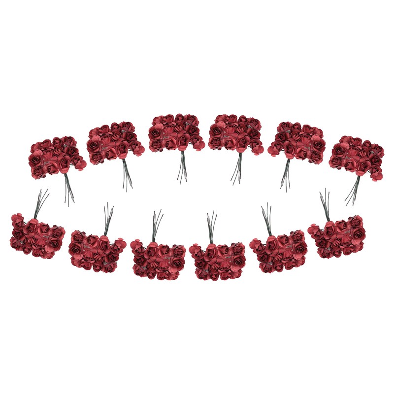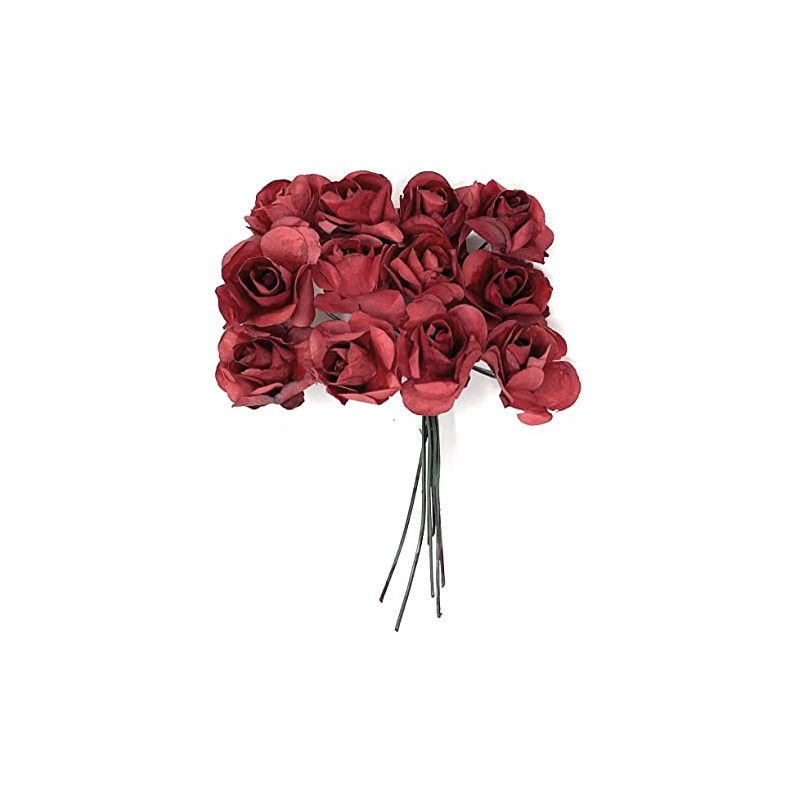 Artificial Roses Fake Roses Embellishments for Craft Flowers Mini Flowers for Crafts Face Flowers for Crafts Rose Decorations Small Paper Flowers Face Roses with Stem Fake Burgundy Roses 144 Pcs 1/2"