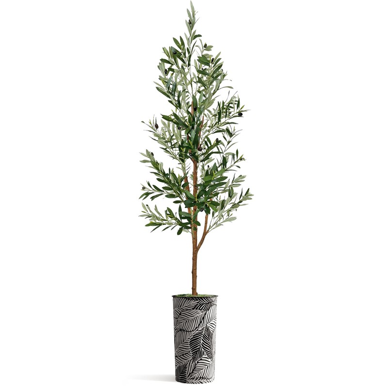 Artificial Tree in Vibrant Black and White Abstract Leaf Planter, Fake Olive Silk Tree for Indoor and Outdoor Home Decoration - 68" Overall Tall (Plant Pot Plus Tree)