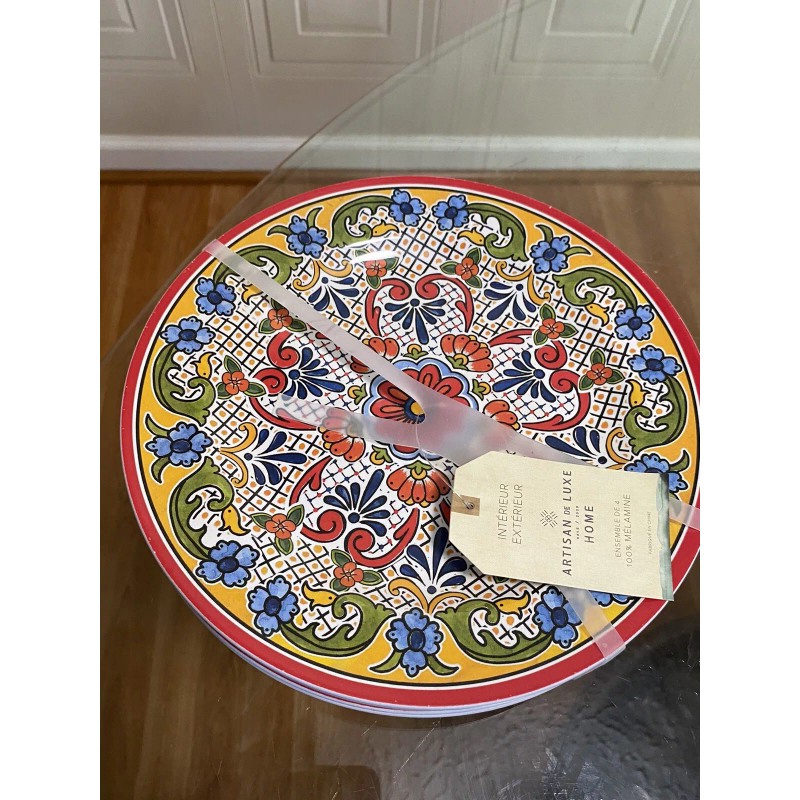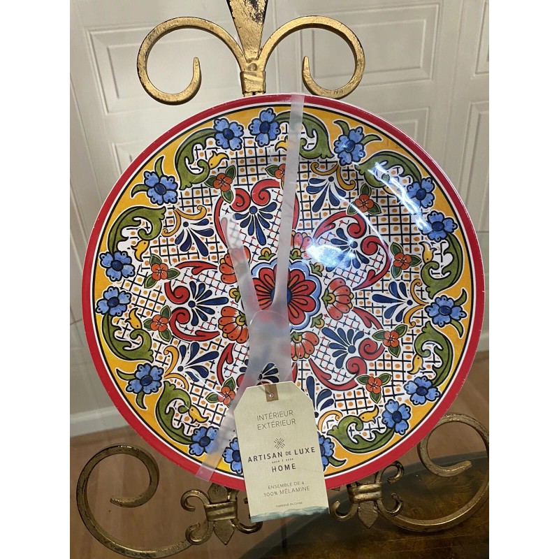 Artisan De Luxe Melamine Spanish Tile Medallion Dinner Plates 8.5” - Set of 4