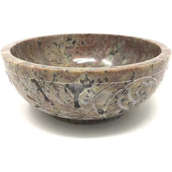 ARTISENIA Soapstone Floral Design Handmade Scrying & Smudge Bowl | Scrying - Bowls & Mirrors Floral Carved Ritual Bowls for Altar, Meditation, Incense, Smudge Stick Rest – Natural Stone Offering Bowl