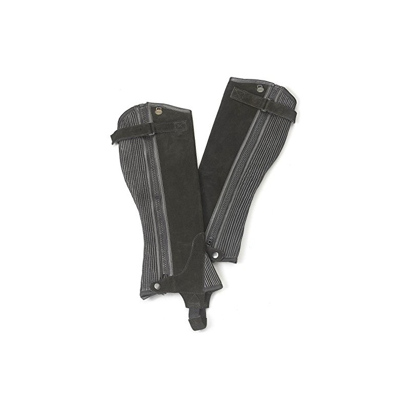 Artist Unknown Ovation Women's Ribbed Suede Leather Durable Lightweight Adjustable Breathable Horse Riding Half Chap, Black, Small (Regular)