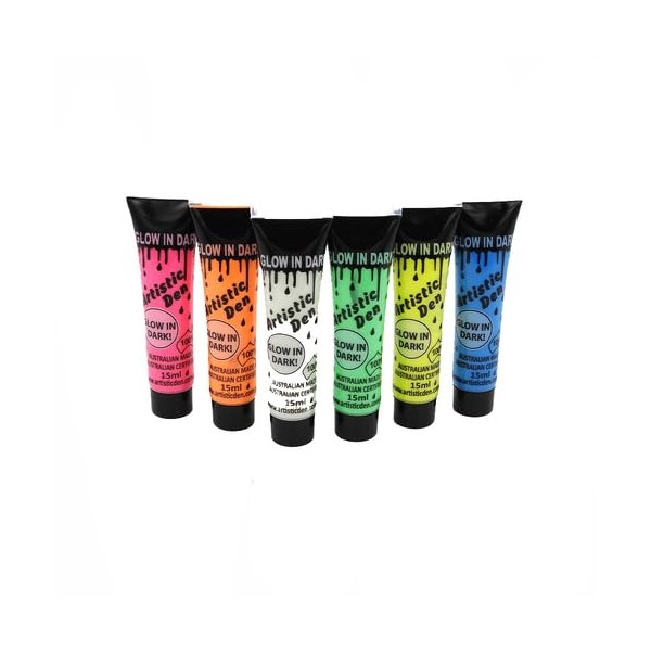 Artistic Den Australian Made Face Paint, UV Glow In The Dark Collection Washable Non-toxic Face Body Paint Set of 6 x 15ml Tubes