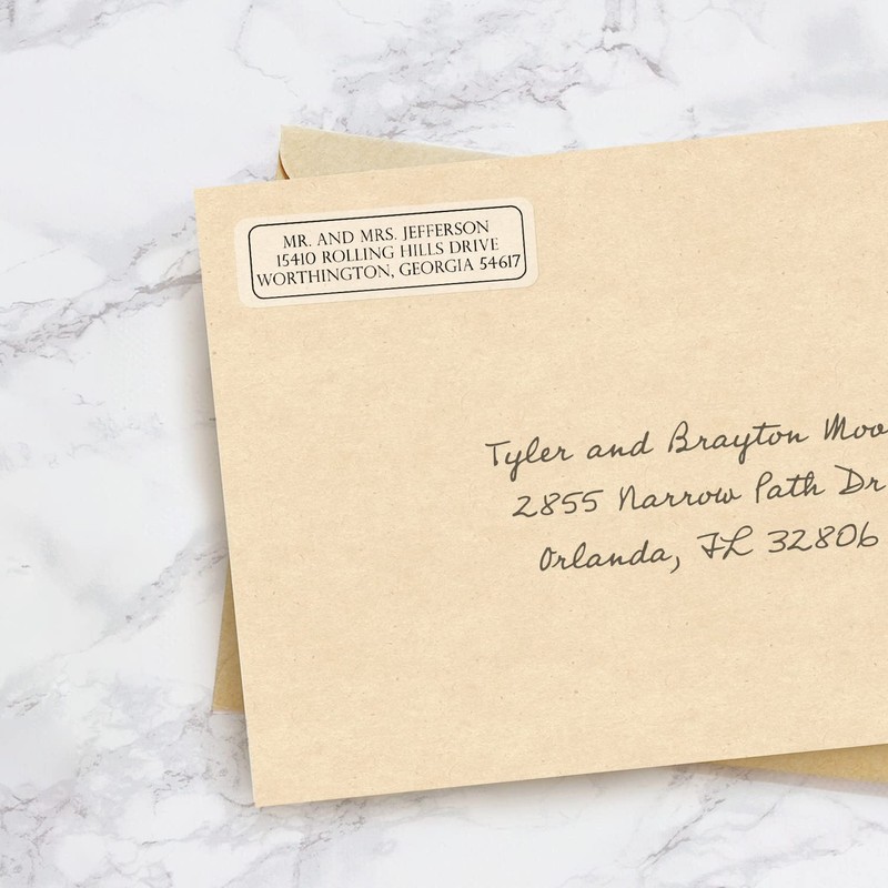 - Perfect Size: These classic address label designs measure approximately 2?" x ?". Simple design for any wedding theme, trendy font choices brings charm to this timeless address label. Clean, legible address font surrounded by a simple black outline.