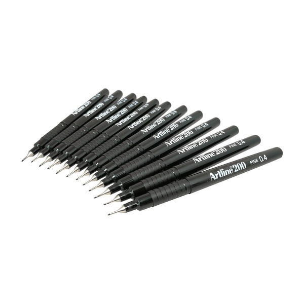 - Artline Fineliner 200 is ideal for writing, ruling and sketching. 0.4mm plastic tip reinforced by strong one-piece metal collar. Colour - Black.