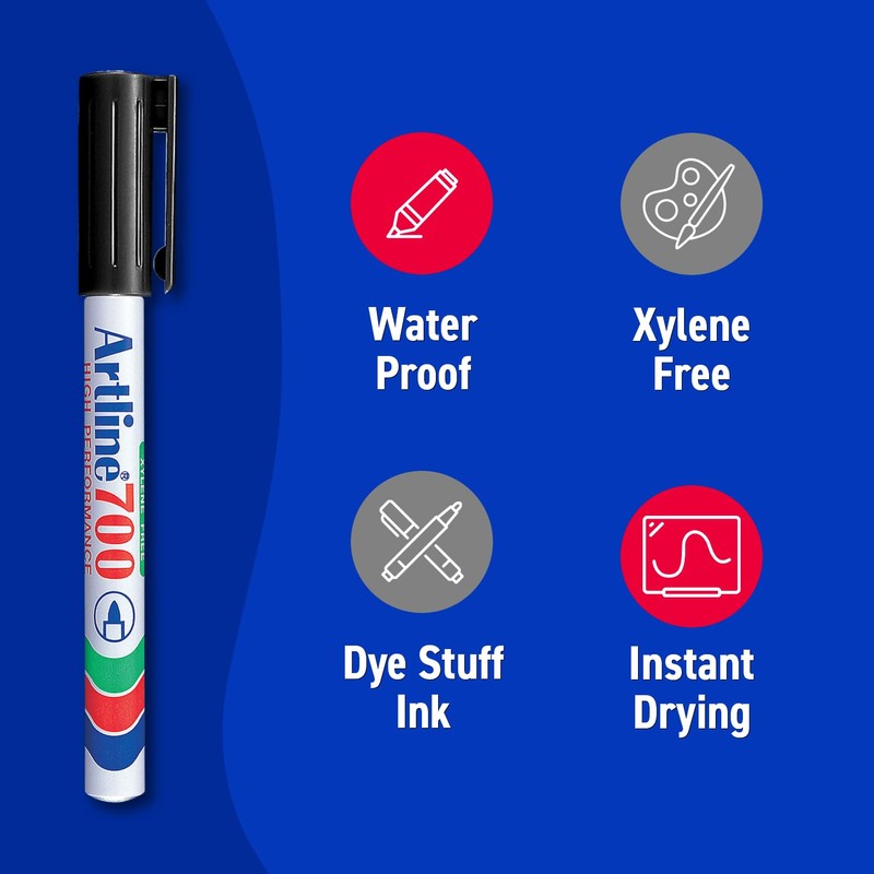 Artline 700 Permanent Markers | Durable Aluminum Barrel | Low Odor | Instant-Drying | Waterproof | Pack of 12 | 0.7mm Bullet Tip | Black
