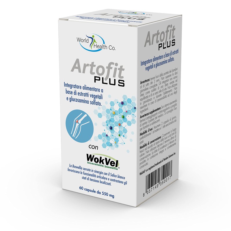 Wokvel® Boswellia serrata (Boswellia serrata Roxb. ex Colebr.) es 40% in ac. boswellici, Coating agent: Hydroxypropyl methylcellulose, Gellan gum, Zinc oxide; Devil's claw (Harpagophytum procumbens (Burch.) DC., maltodextrin from corn) root tit. at 4% in harpagoside, vegetal Glucosamine sulphate HCl, White willow (Salix alba L., maltodextrin from corn) bark tit. 15% in salicin, Bulking agent: Dibasic calcium phosphate; Additive: Rice starch; Bulking agent: Microcrystalline Xellulose; Spirea ulmaria (Filipendula ulmaria (L.) Maxim, maltodextrin from corn) flowers and leaves e.g. tit. at 0.2% in salicylic acid, Rosehip (Rosa canina L., corn maltodextrin, anhydrous colloidal silica) rose hips tit. 70% vitamin C, Horsetail (Equisetum arvense L.) sterile aerial parts tit. 1% silica; Anti-caking agents: Vegetable magnesium stearate E470b, Silicon dioxide E551;