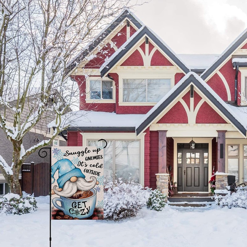 Artofy Snuggle Up Gnomies it's Cold Outside Home Decorative Garden Flag Winter Gnome Plaid House Yard Coffee Bean Cup Snowflake Outside Decor, Christmas Farmhouse Outdoor Small Burlap Decoration 12x18