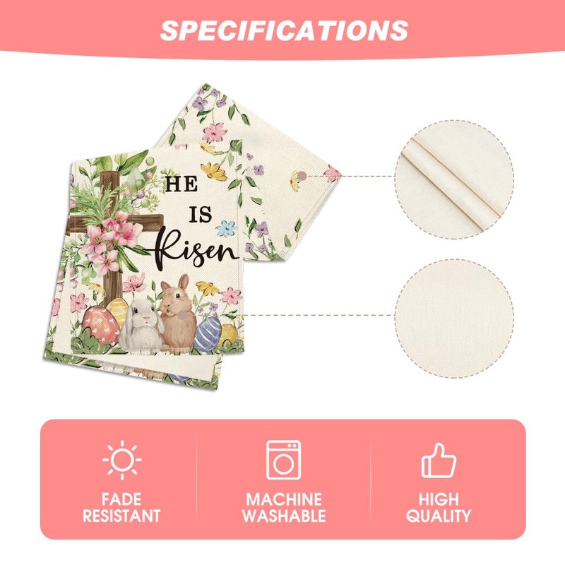 Artoid Mode Bunny Rabbits Eggs He is Risen Easter Table Runner, Seasonal Spring Kitchen Dining Table Decoration for Home Party Decor 13x48 Inch