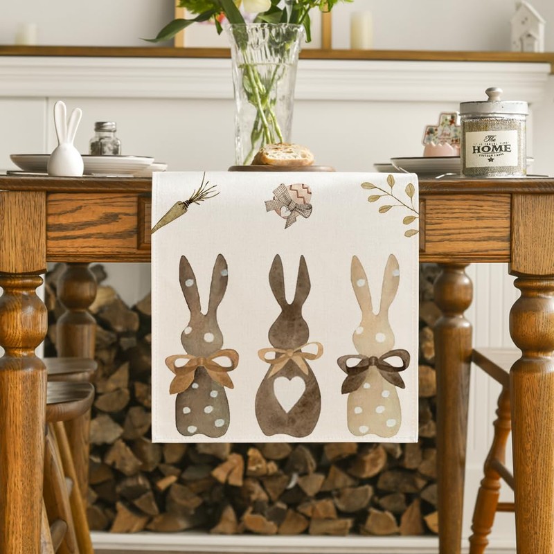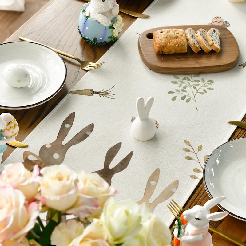 Artoid Mode Carrots Rabbits Bunny Happy Easter Table Runner, Seasonal Spring ...