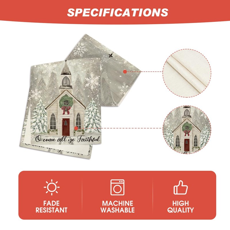Artoid Mode Church Xmas Trees Snowflakes Merry Christmas Table Runner, Bow Tie Kitchen Dining Table Decoration for Outdoor Home Party 13x36 Inch