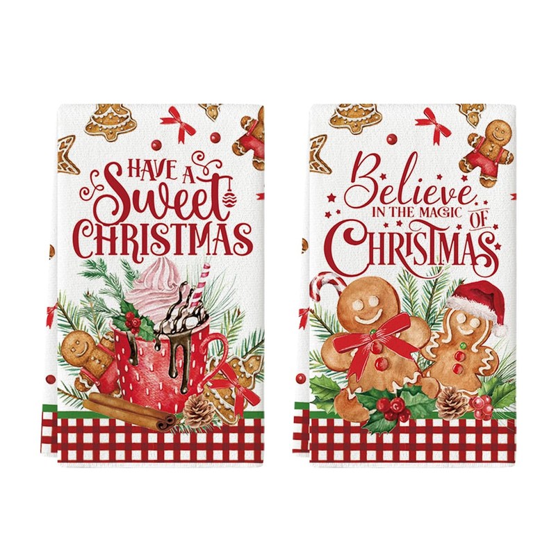 Artoid Mode Hot Coco Xmas Gingerbread Have A Sweet Christmas Kitchen Towels Dish Towels, 18x26 Inch Daily Seasonal Winter Decoration Hand Towels Set of 2