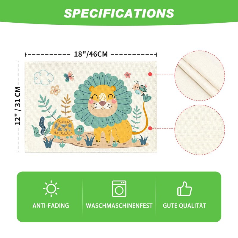 Artoid Mode Lion Turtle Jungle Children's Place Mats Set of 4 30 x 45 cm Washable Place Mats Kitchen Party Decoration