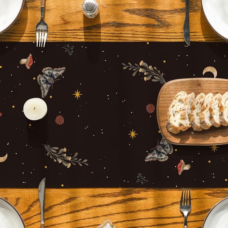 Artoid Mode Mushroom Moon and Moth Fall Table Runner, Seasonal Autumn Kitchen Dining Table Decoration for Home Party Decor 13x72 Inch