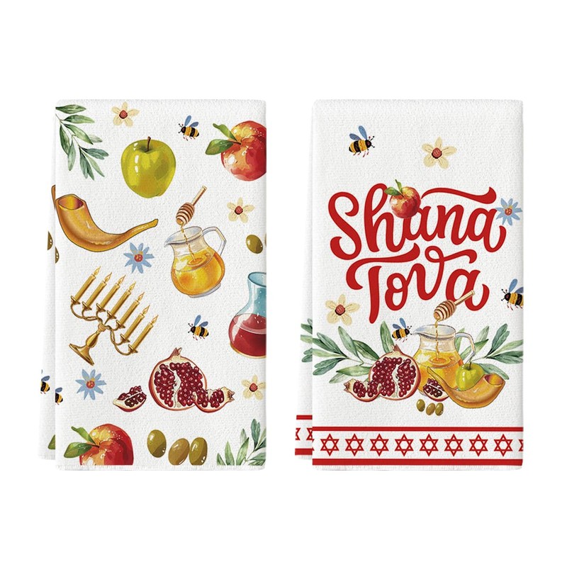 Artoid Mode Pomegranate Honey Rosh Hashanah Kitchen Towels Dish Towels, 18x26 Inch Shana Tova Decor Hand Towels Set of 2